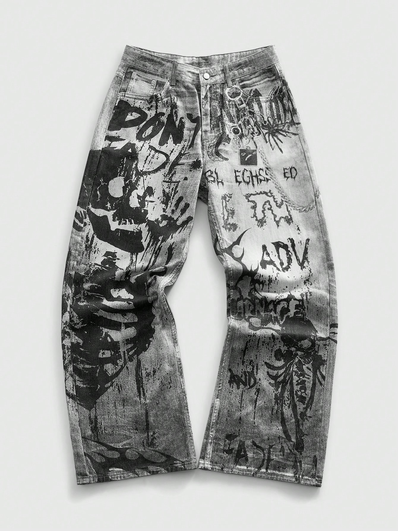 Street Life Modische Hiphop Loose Straight Leg Jeans mit Gürtelschlaufen, vielseitige Streetwear