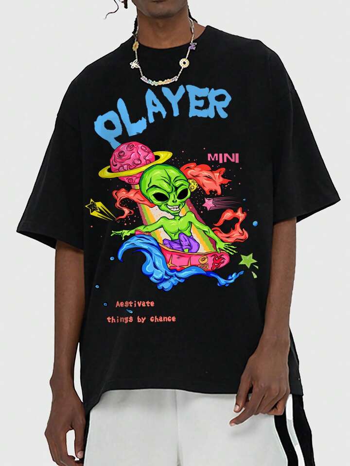 Street Life Männer T-Shirt mit Alien & Buchstabe Grafik,
