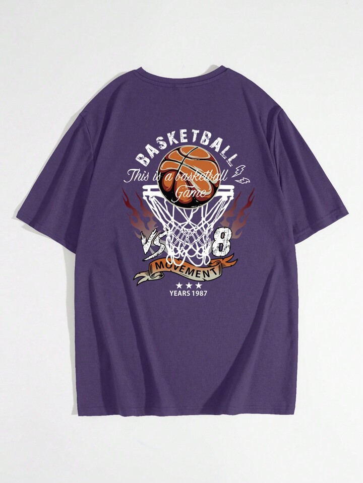 Street Life Männer T-Shirt mit Basketball & Buchstabe Grafik,