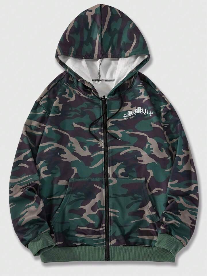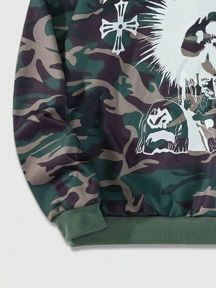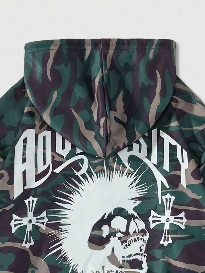Street Life Jungen Kapuzenpullover mit Kängurutaschen Kordelzug und Camouflage Buchstaben- und Totenkopf Print