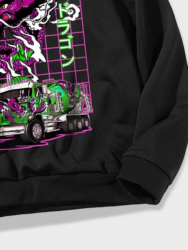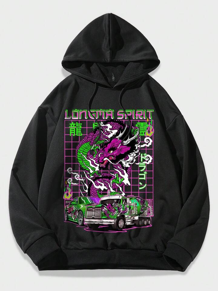 Street Life Männer Hoodie mit Auto Drachen & Buchstaben Grafik, Tunnelzug,