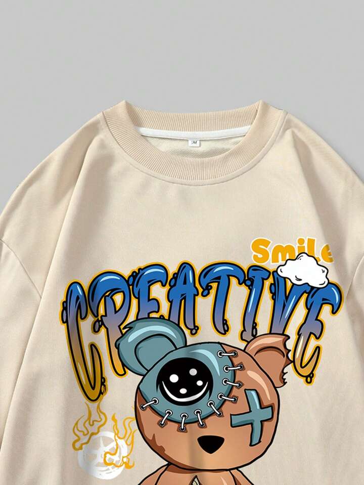 Street Life Jungen Sweatshirt mit Cartoon Bären- und Buchstabenmuster