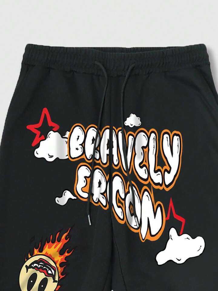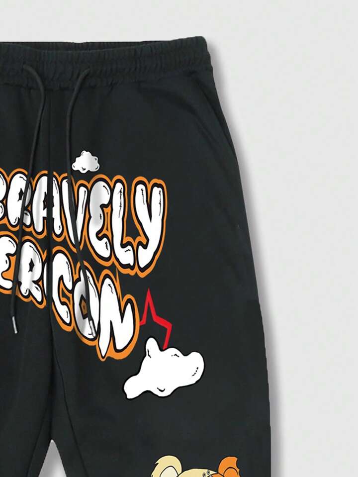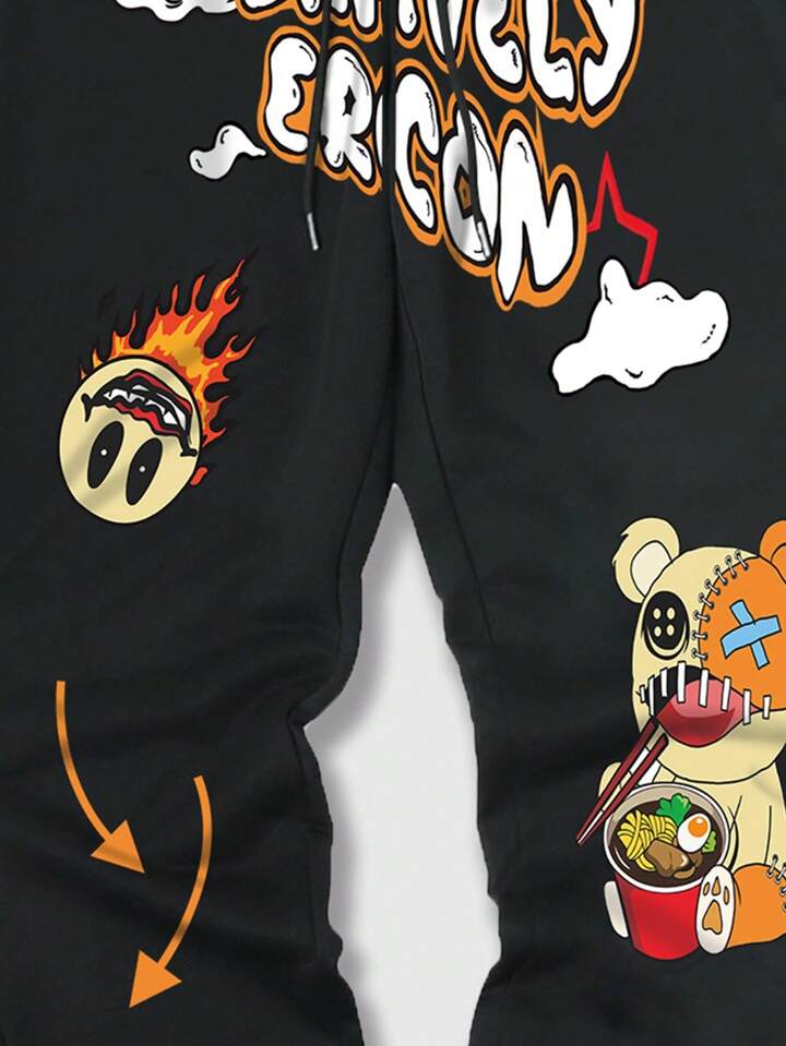 Street Life Männer Jogginghose mit Cartoon & Buchstabe Grafik, Tunnelzug,