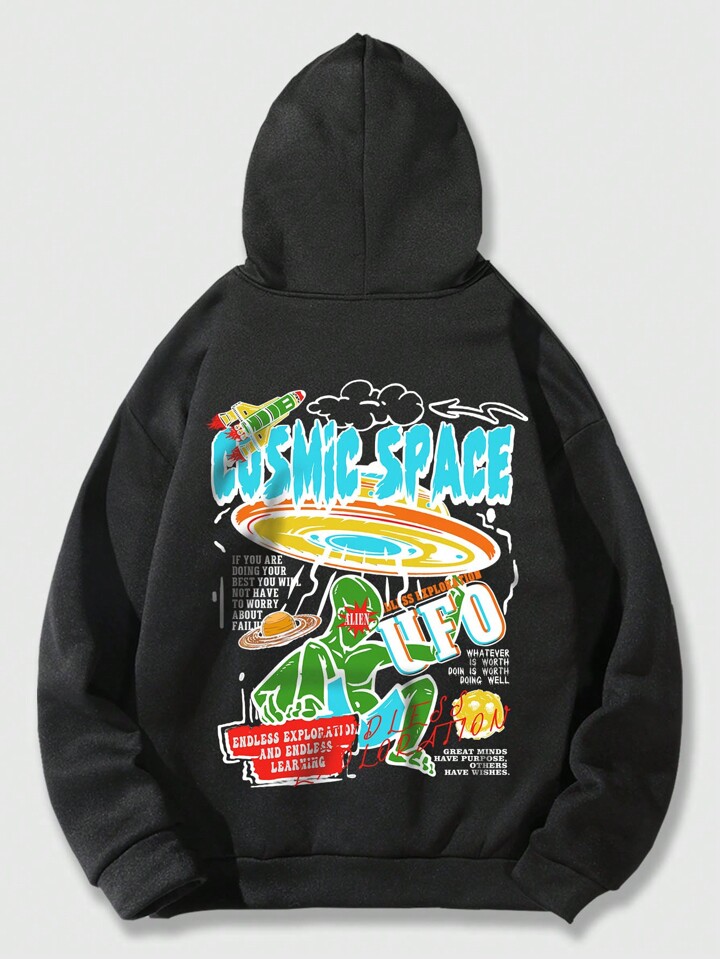 Street Life Herren Cartoon & Slogan Grafik Kapuzenpulli Mit Thermischer Fütterung Und Kordelzug