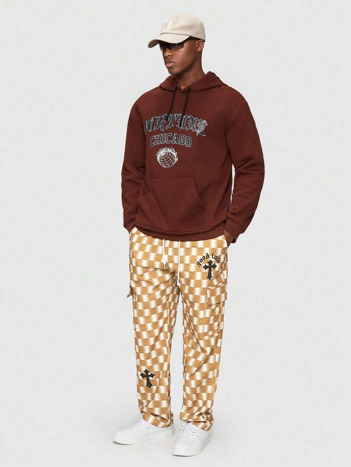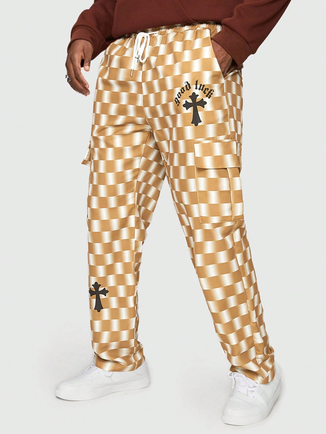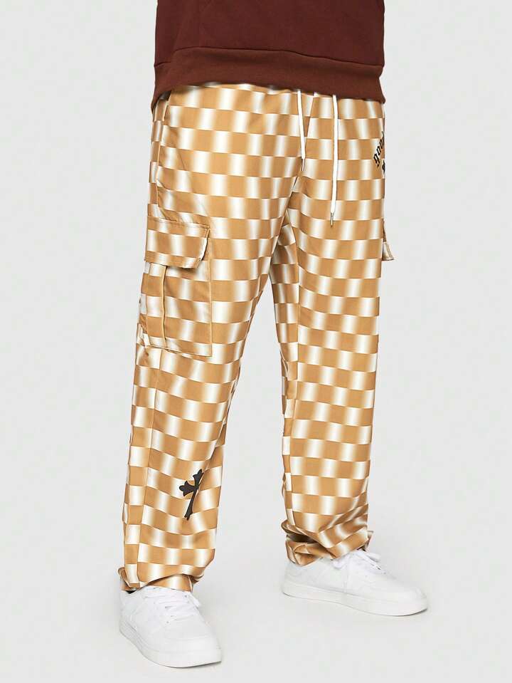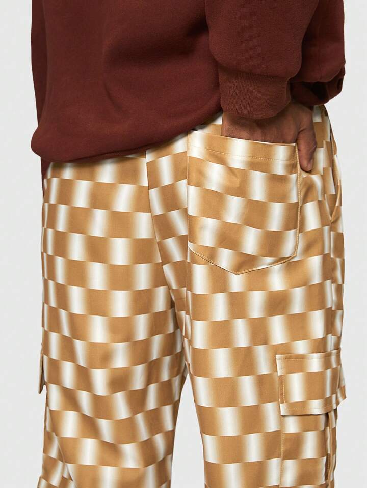 Street Life Männer Cargo Hose mit Schachbrett Muster, Tunnelzug,