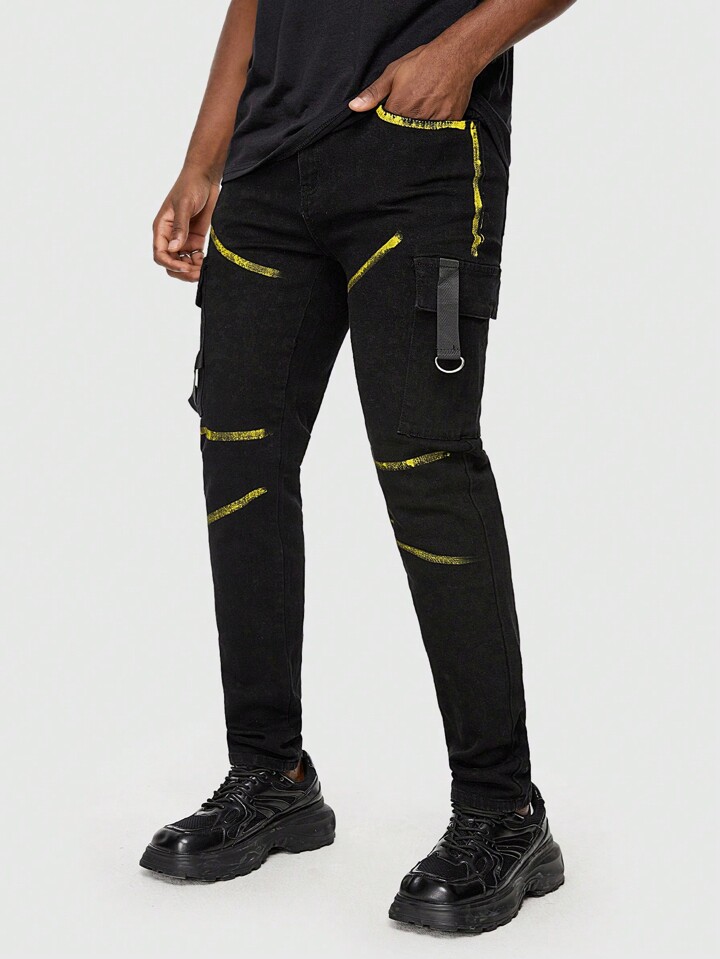 Street Life Männer Cargo Jeans mit Kontrast Band, Pattentasche,