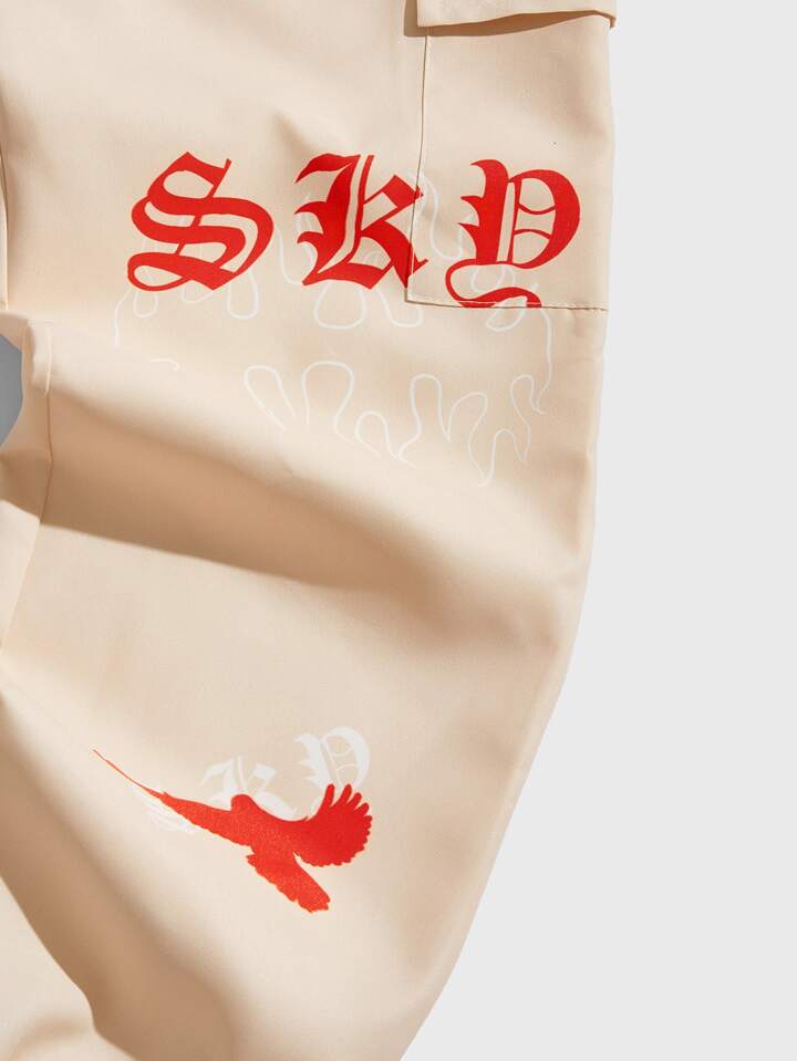 Street Life Männer Cargo Hose mit Feuer Buchstaben Grafik, Tunnelzug