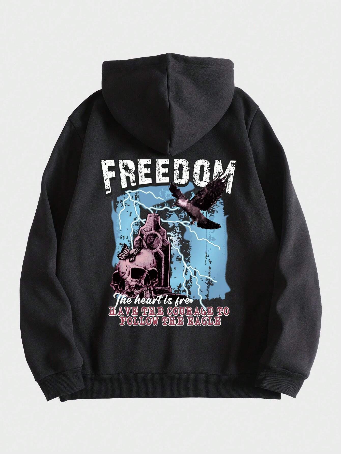 Street Life Männer Hoodie mit Schädel & Buchstaben Grafik, Tunnelzug, Thermal Futter,