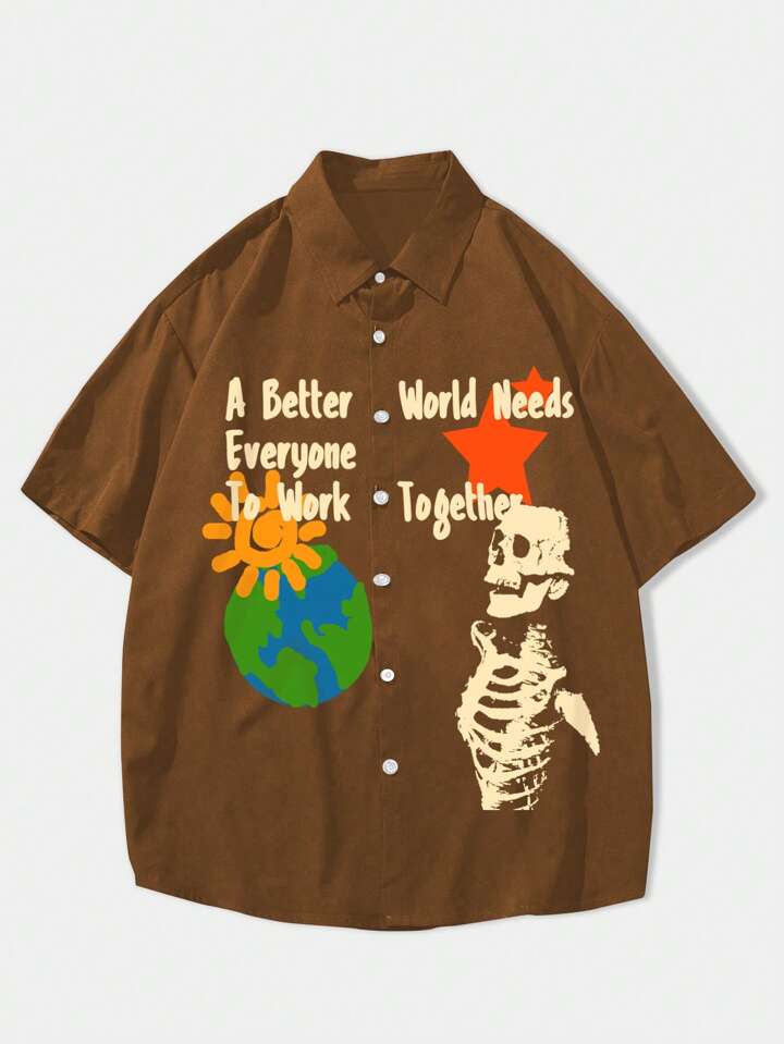 Street Life Männer Shirt mit Buchstaben & Skelett Grafik
