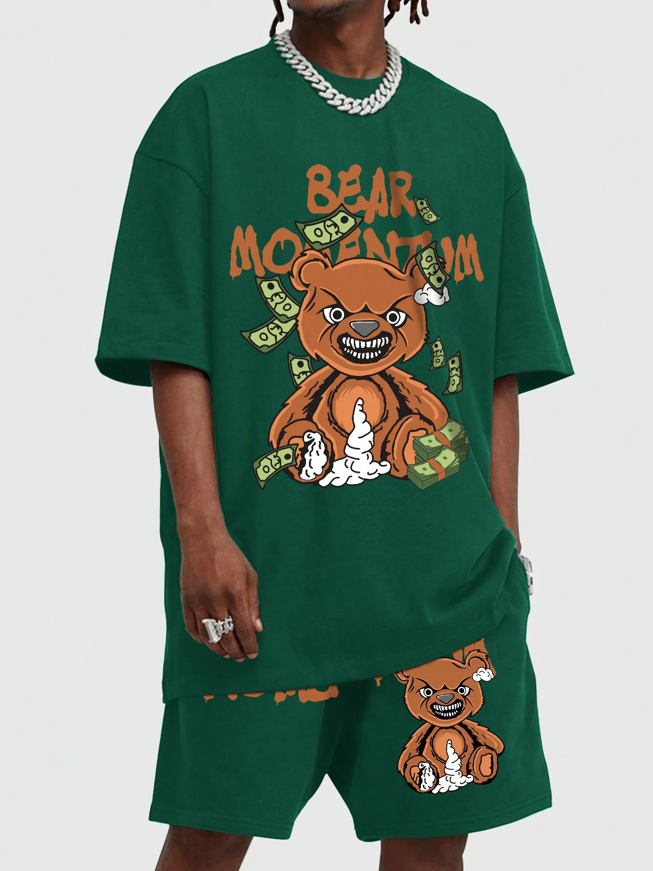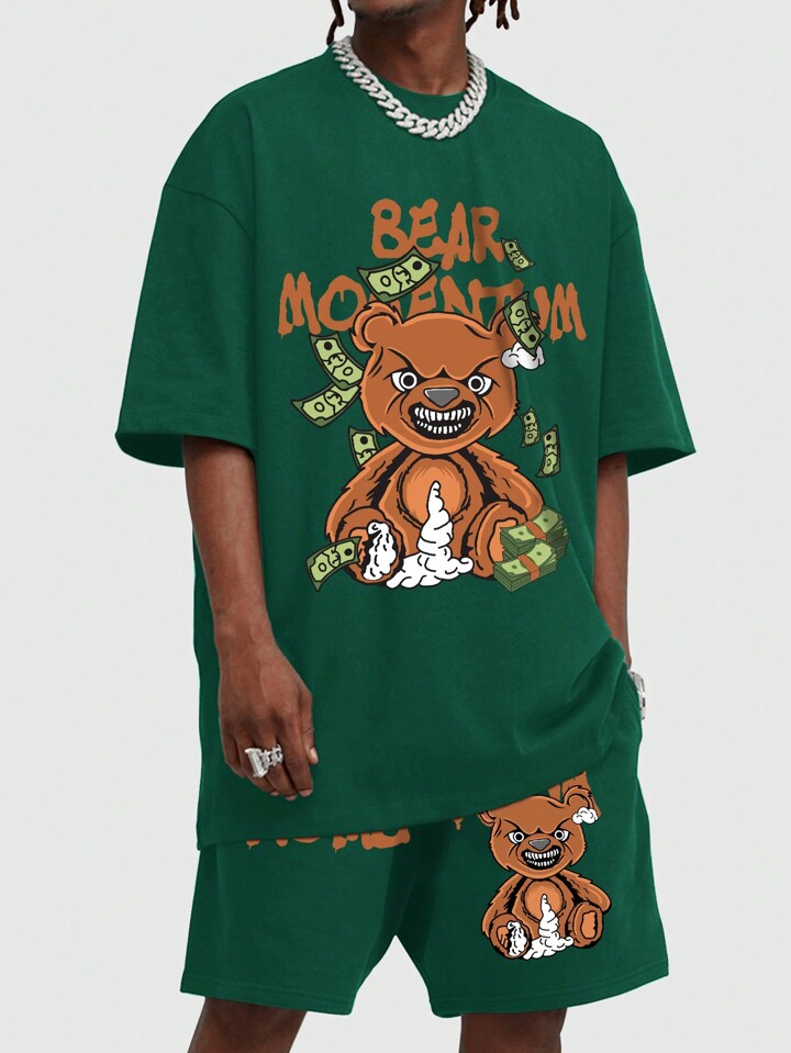 Street Life Herren Set aus Drop Shoulder T-Shirt und Shorts mit Bären und Buchstaben Aufdruck