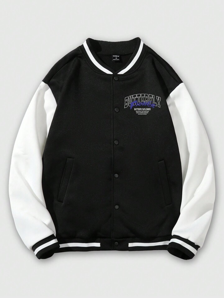 Street Life Herren Drop Shoulder College Jacke mit Schmetterlings und Buchstabengrafik, gestreiftem Besatz