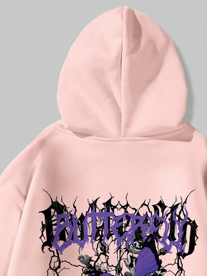 Street Life Herren Schmetterling & Buchstaben Muster Kängurutaschen Hoodie Und Jogginghose Set