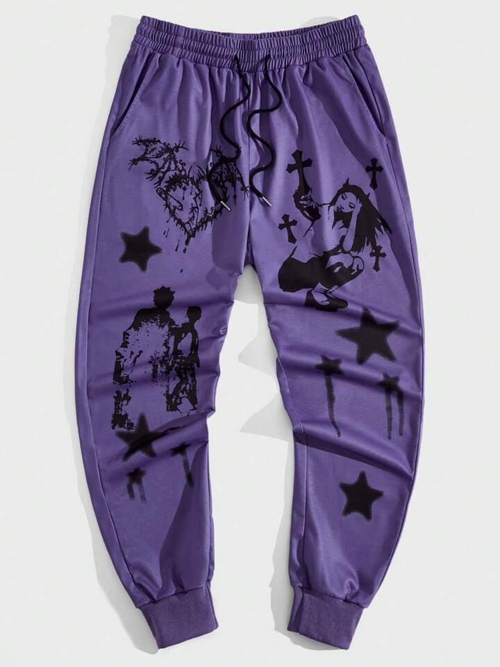 Street Life Herren Trainingshose Mit Charakter & Stern Muster Sowie Kordelzug-bund
