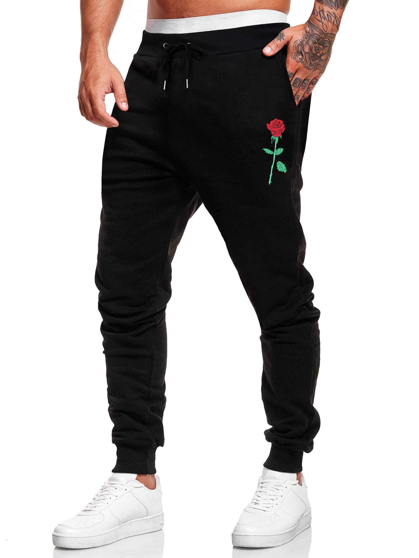 Street Life Herren Jogginghose mit Blumen Grafik und Kordelzug, Schule