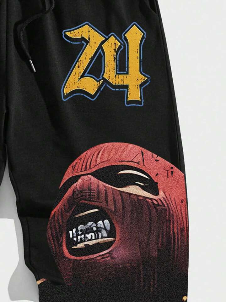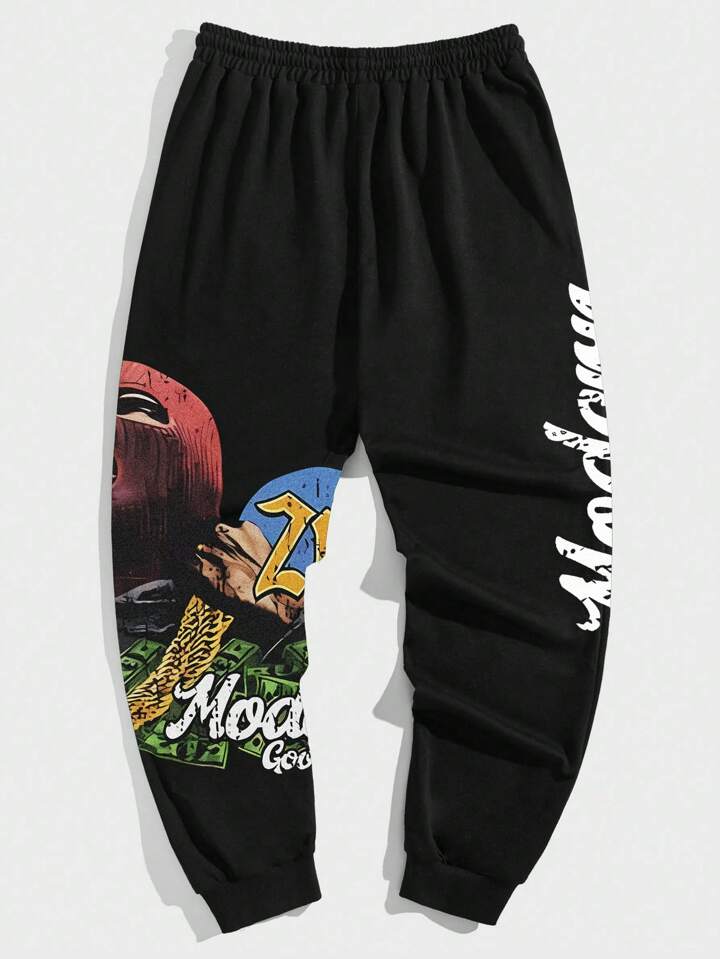 Street Life Herren Buchstaben & Ziffern Muster Jogginghose mit Kordelzug an der Taille, Lässig