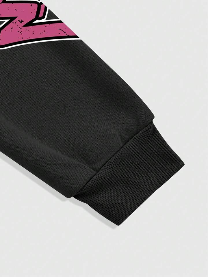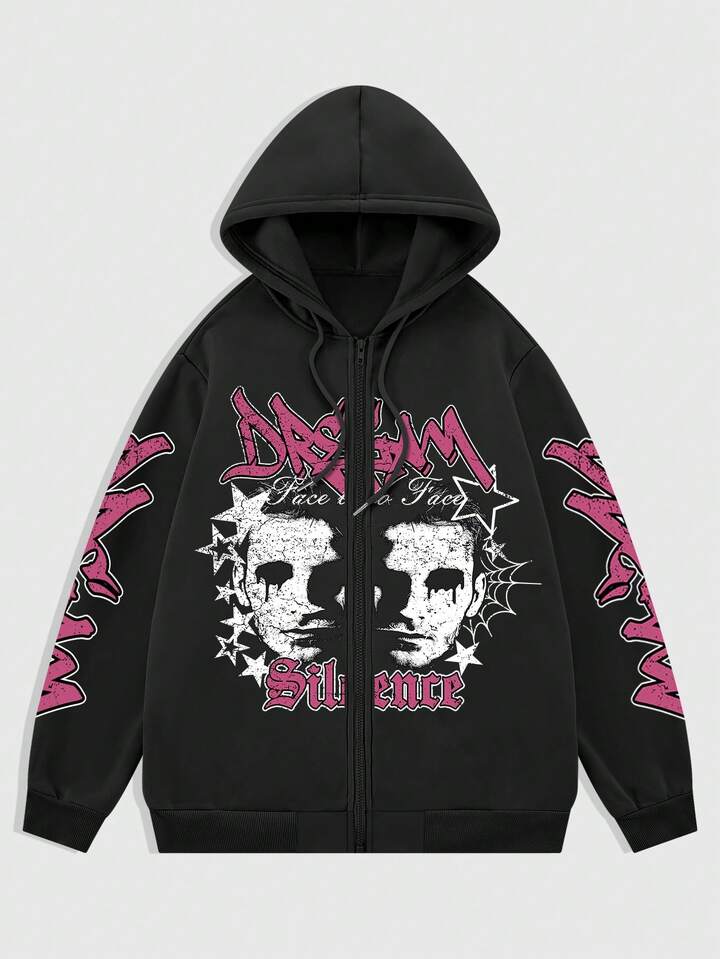 Street Life Herren Kapuzen Sweatshirt mit Reißverschluss, Muster von Buchstaben und Zahlen