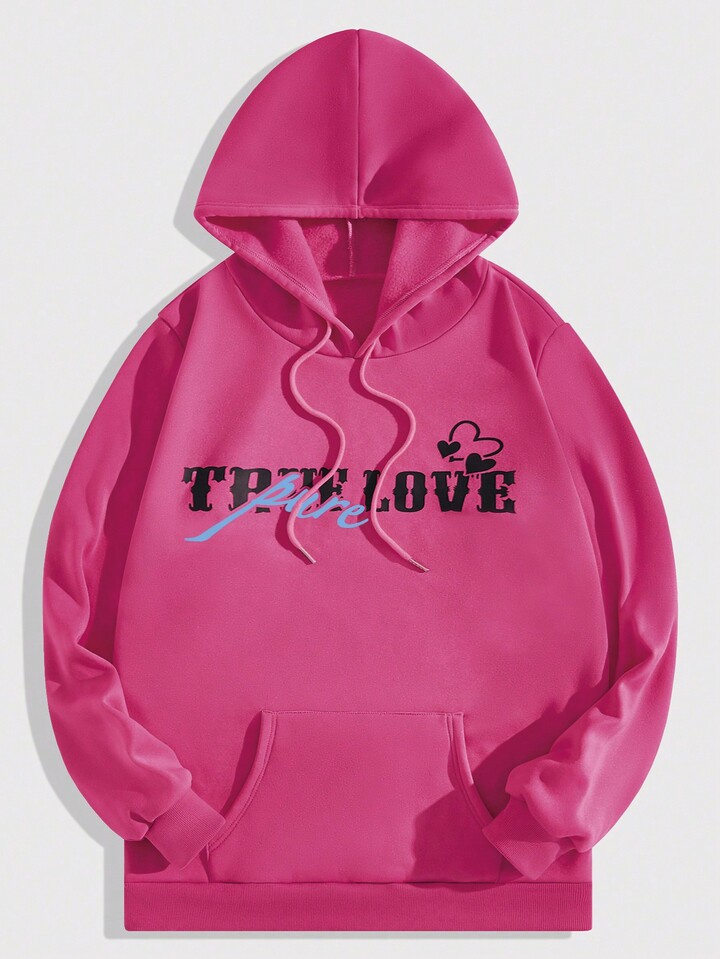 Street Life Männer Thermal Hoodie mit Buchstaben Grafik, Känguru-Tasche, Tunnelzug
