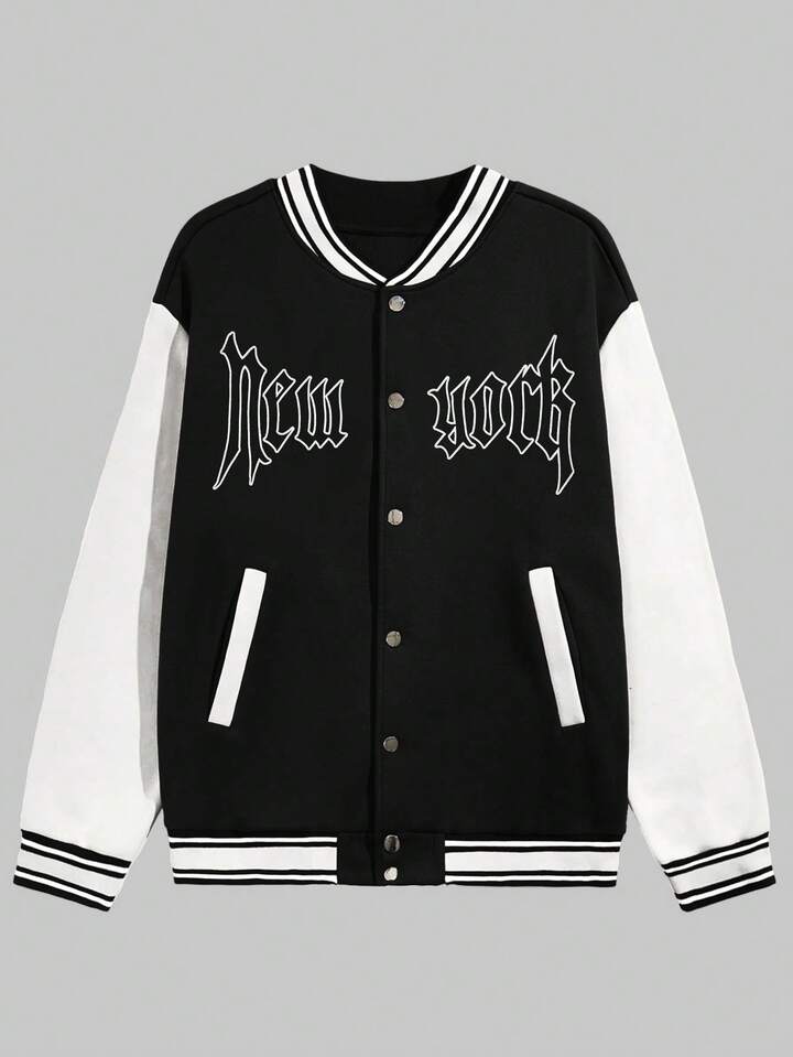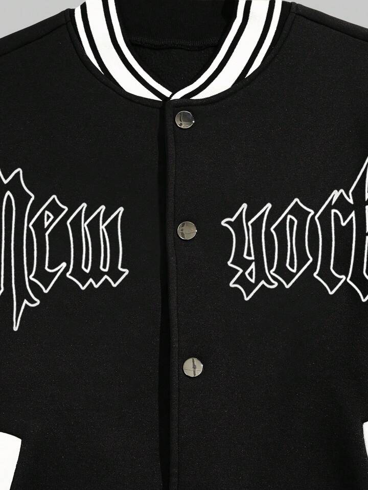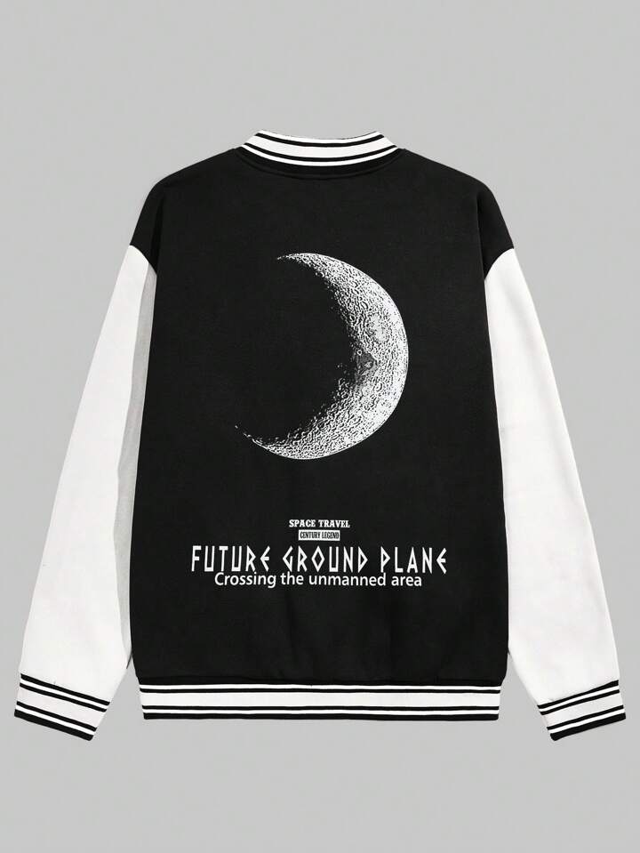 Street Life Herren Drop Shoulder College Jacke mit grafischem Streifenbesatz und Mond und Slogan Motiv