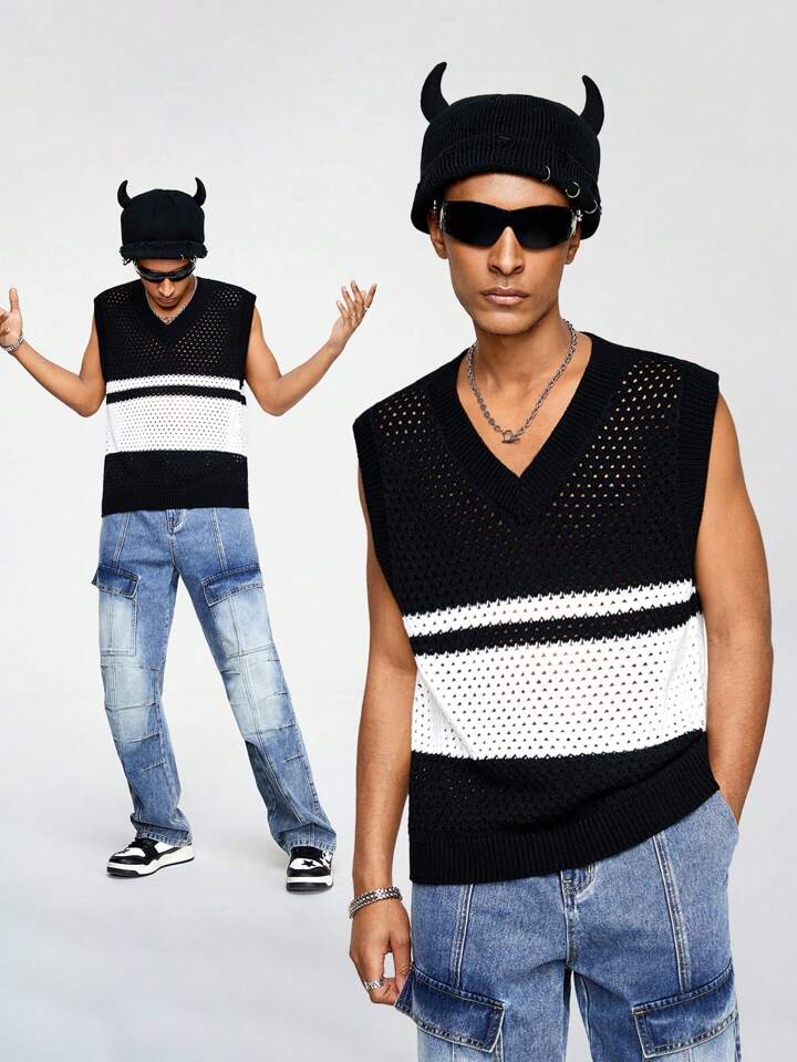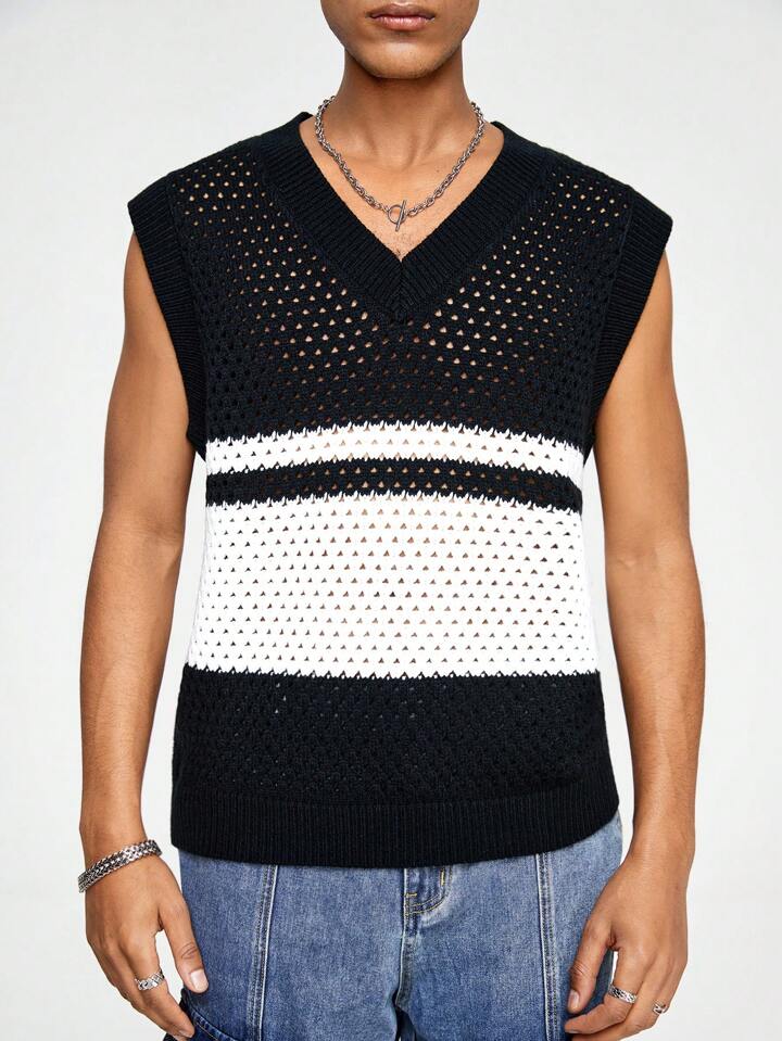 Street Life Gestricktes Ärmelloses Herren Pullover Mit Hohler Ausschnit