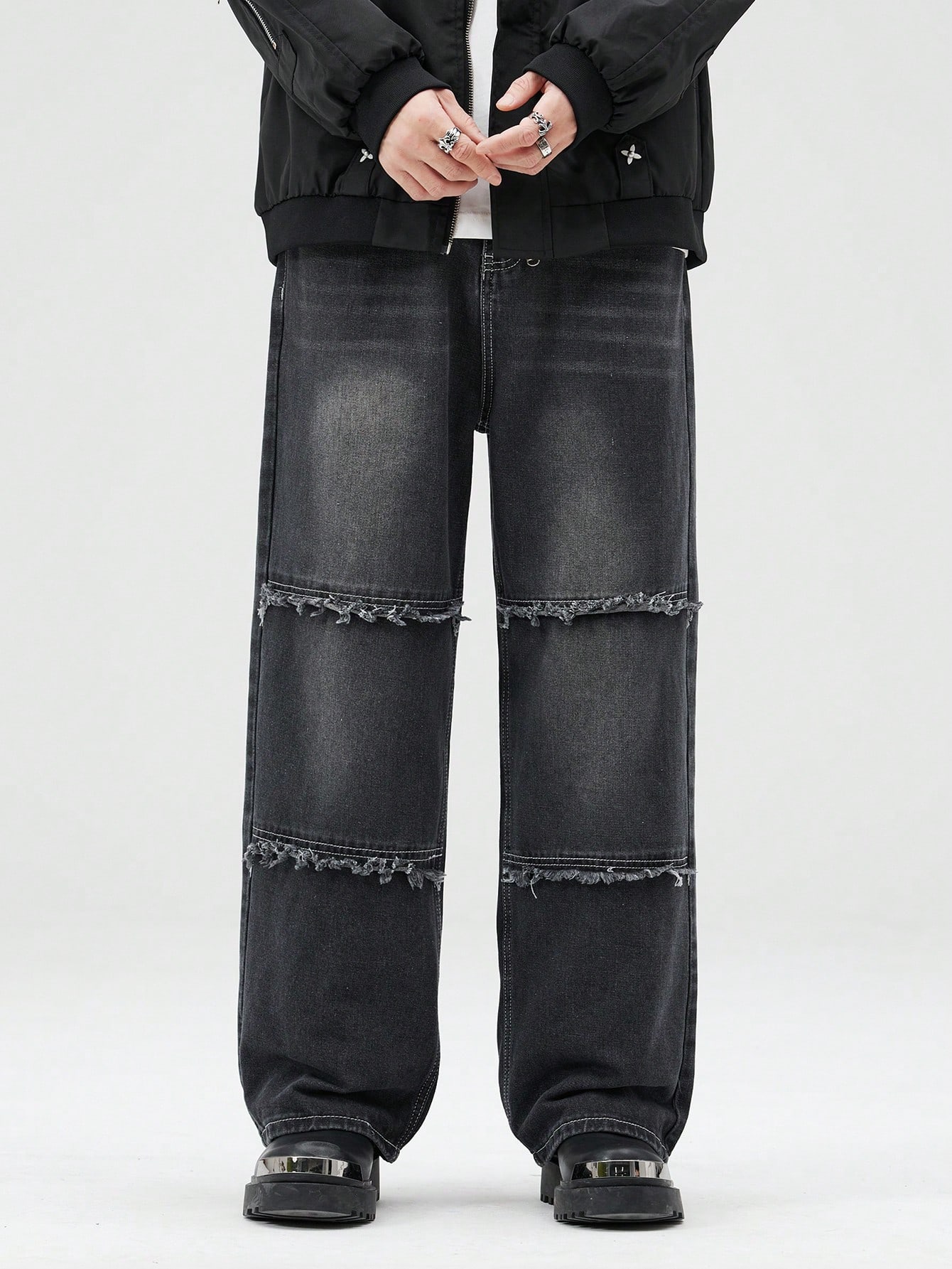 Street Life Lose Herren-jeans Mit Raw Edge-patchwork