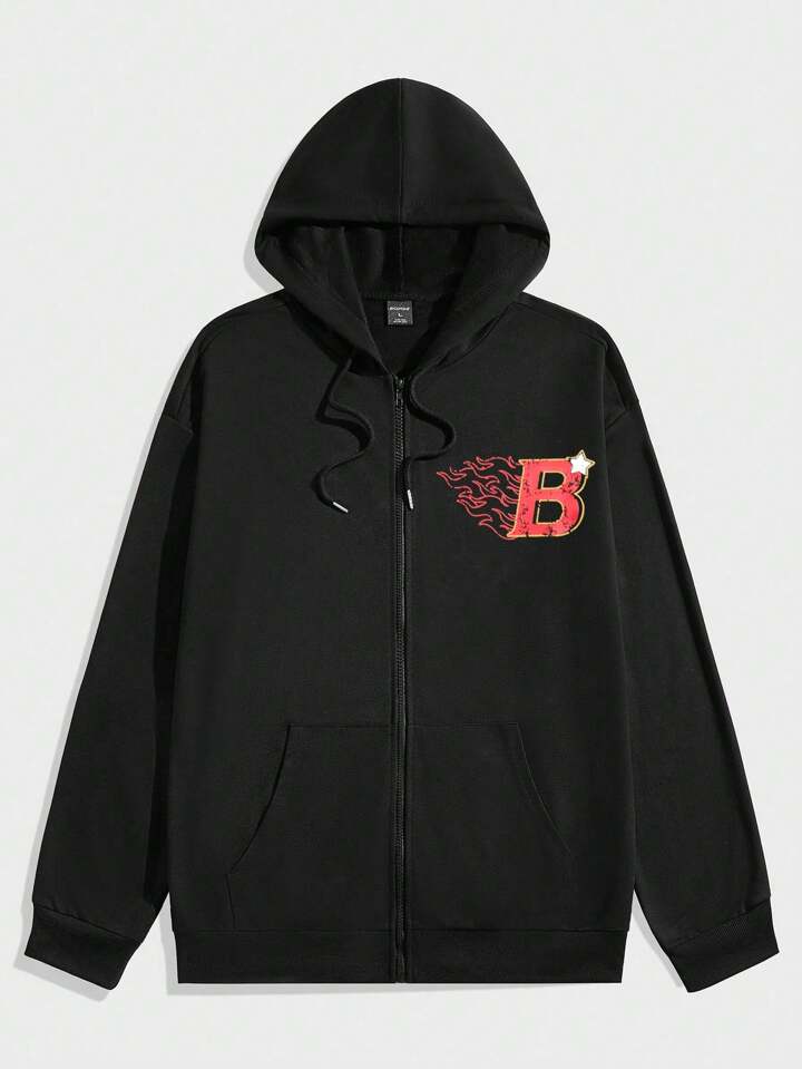 Street Life Männer Hoodie mit Skelett & Buchstaben Grafik, Tunnelzug,