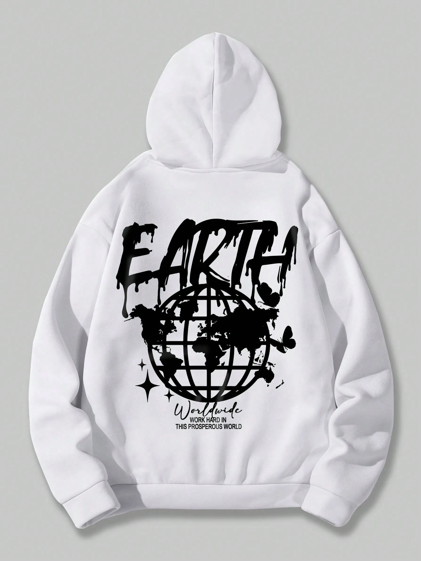 Street Life Herren-kapuzenpullover Mit Kordelzug Und Thermofutter Und Slogan-grafik