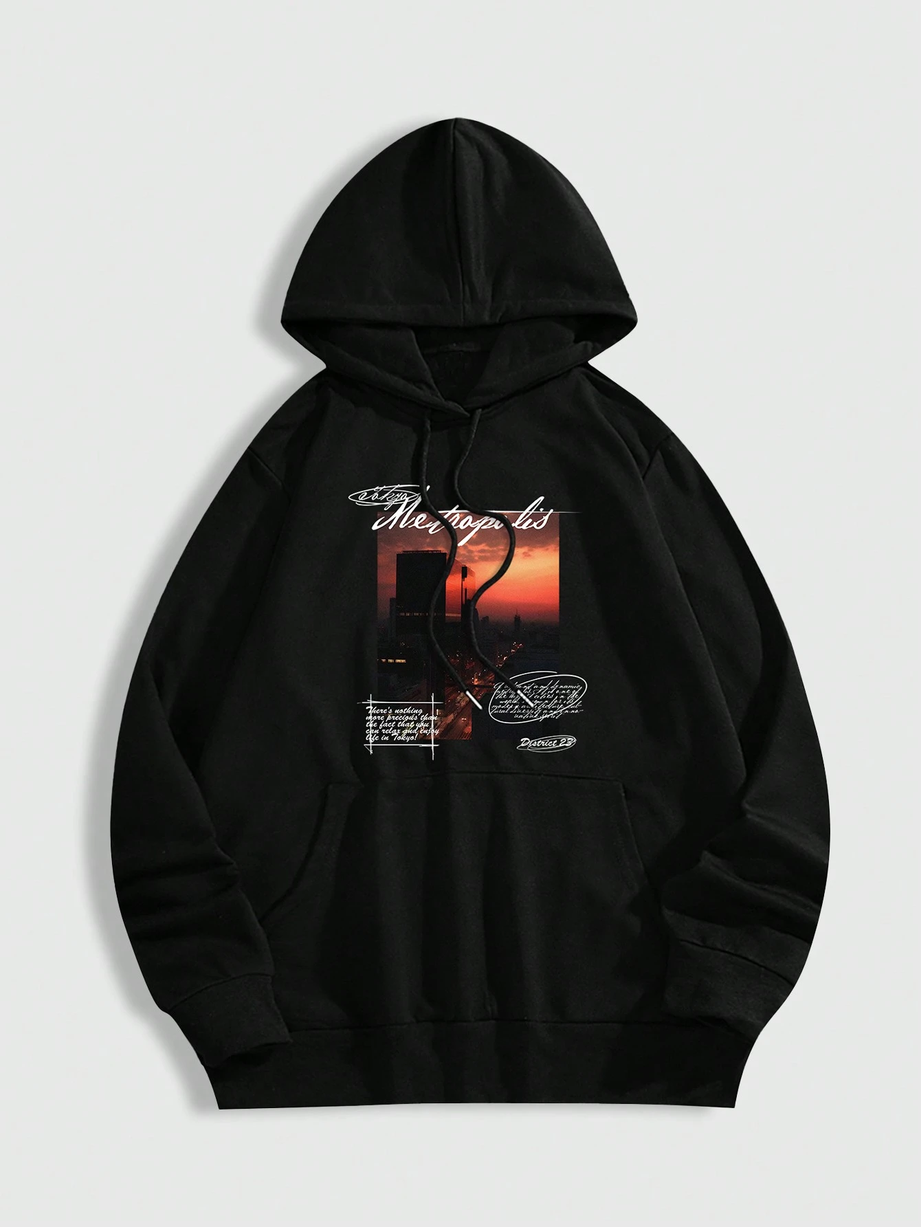 Street Life Männer Hoodie mit Buchstaben Grafik, Känguru-Tasche, Tunnelzug,