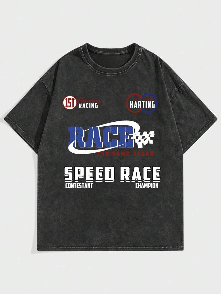 Street Life Herren Schneewaschen Vintage Buchstaben Grafik Drop Shoulder T-Shirt
