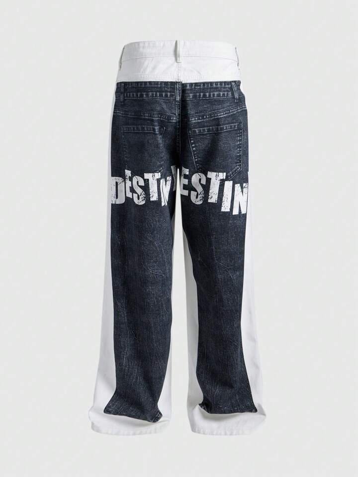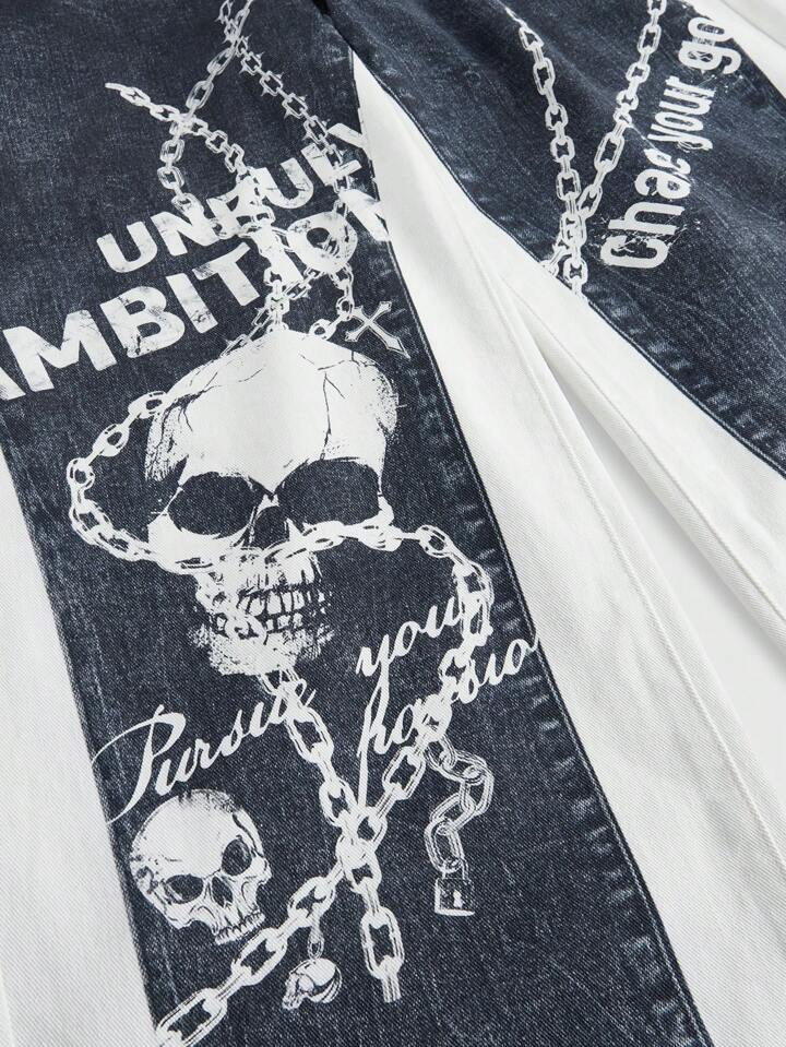 Street Life Herren Straight Loose Fit Lässig Jeans mit Tasche und Totenkopf Muster
