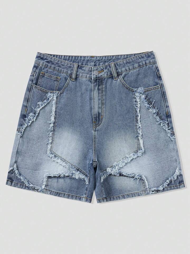 Street Life Herren Sommer Lässige Denim Shorts mit ausgefranstem Saum und Stern Patch, Schule