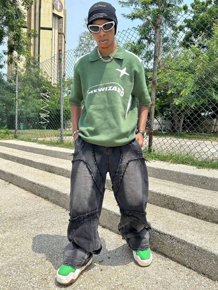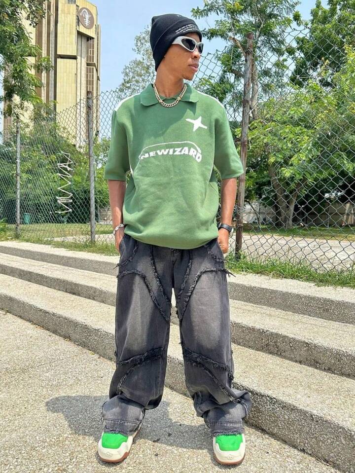 Street Life Männer Sommer lose kurzärmelige gestrickte Top mit Buchstaben und Pentagramm Muster
