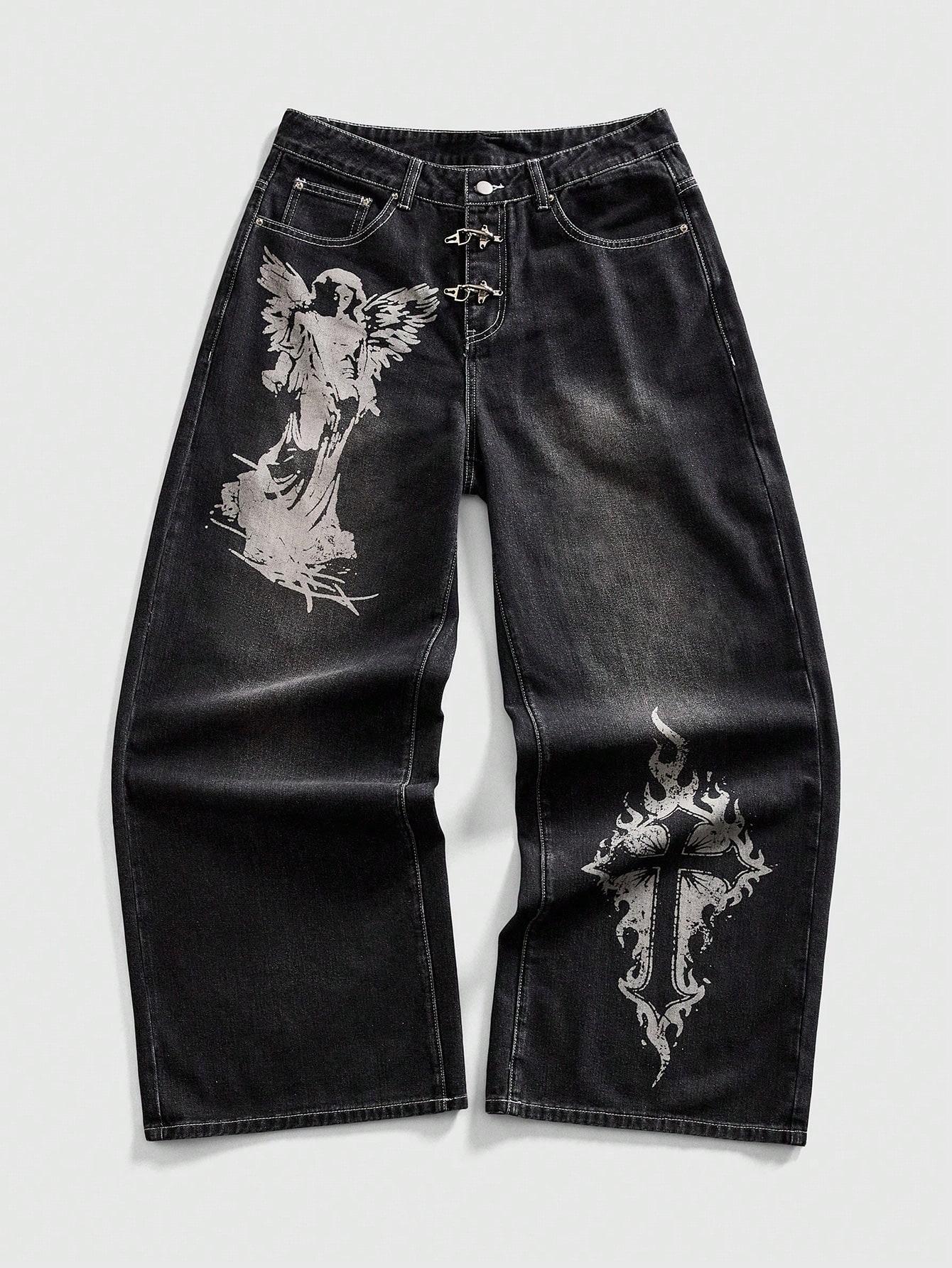 Herren Jeans mit lockerem Sitz und Flugzeug-Schnallen-Muster