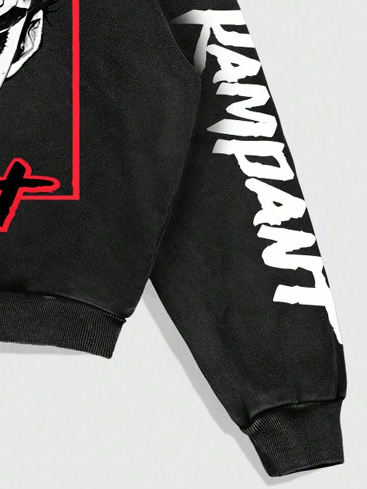 Street Life Herren Herbst Cartoon Charakter Buchstaben Muster Lässig Fleece Kapuzenpullover Sweatshirt