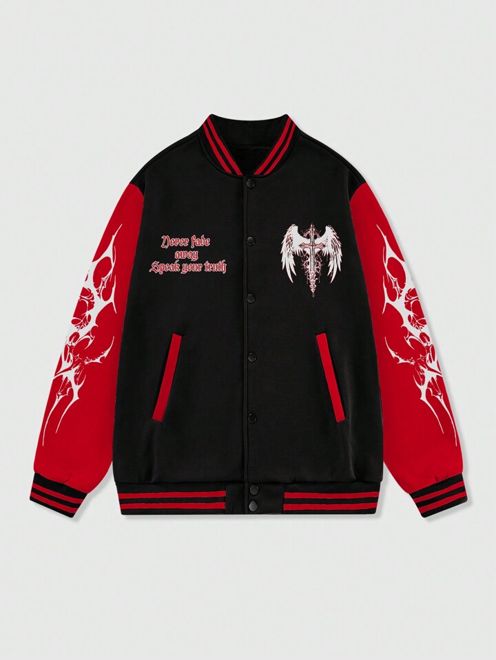 Street Life Herren Herbst Lässig Baseball Jacke mit Slogan- und Kreuz-Grafik-Muster, Langarm