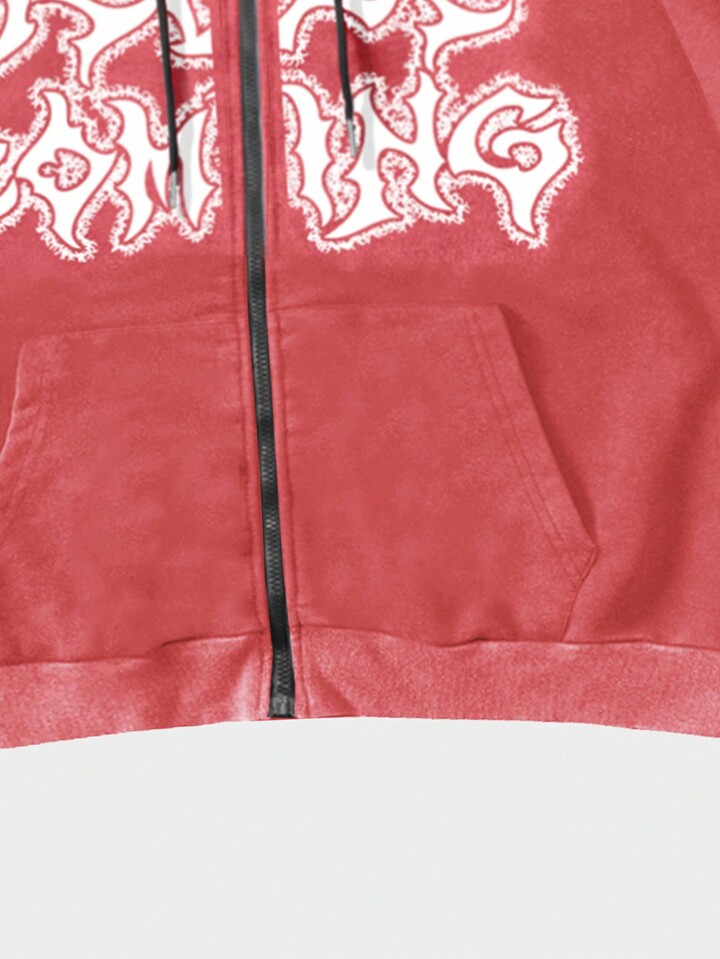 Street Life Herren Herbst Vintage Buchstaben-Muster Langarm Kapuzenpullover in verwaschenem Look, Streetwear Style