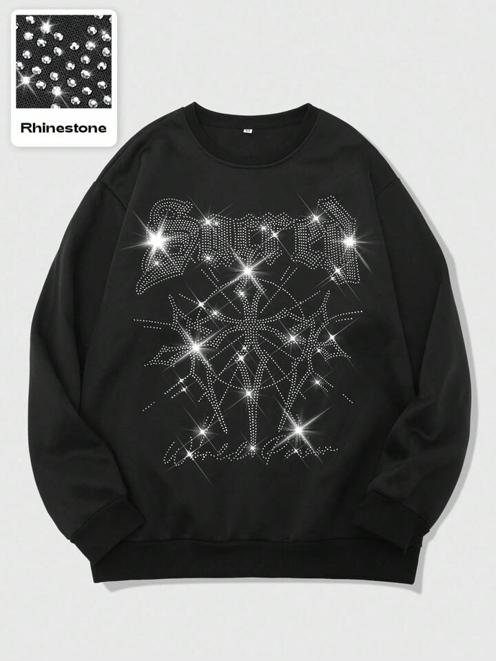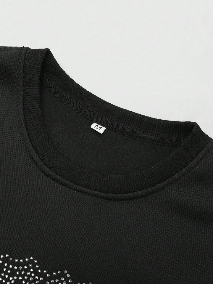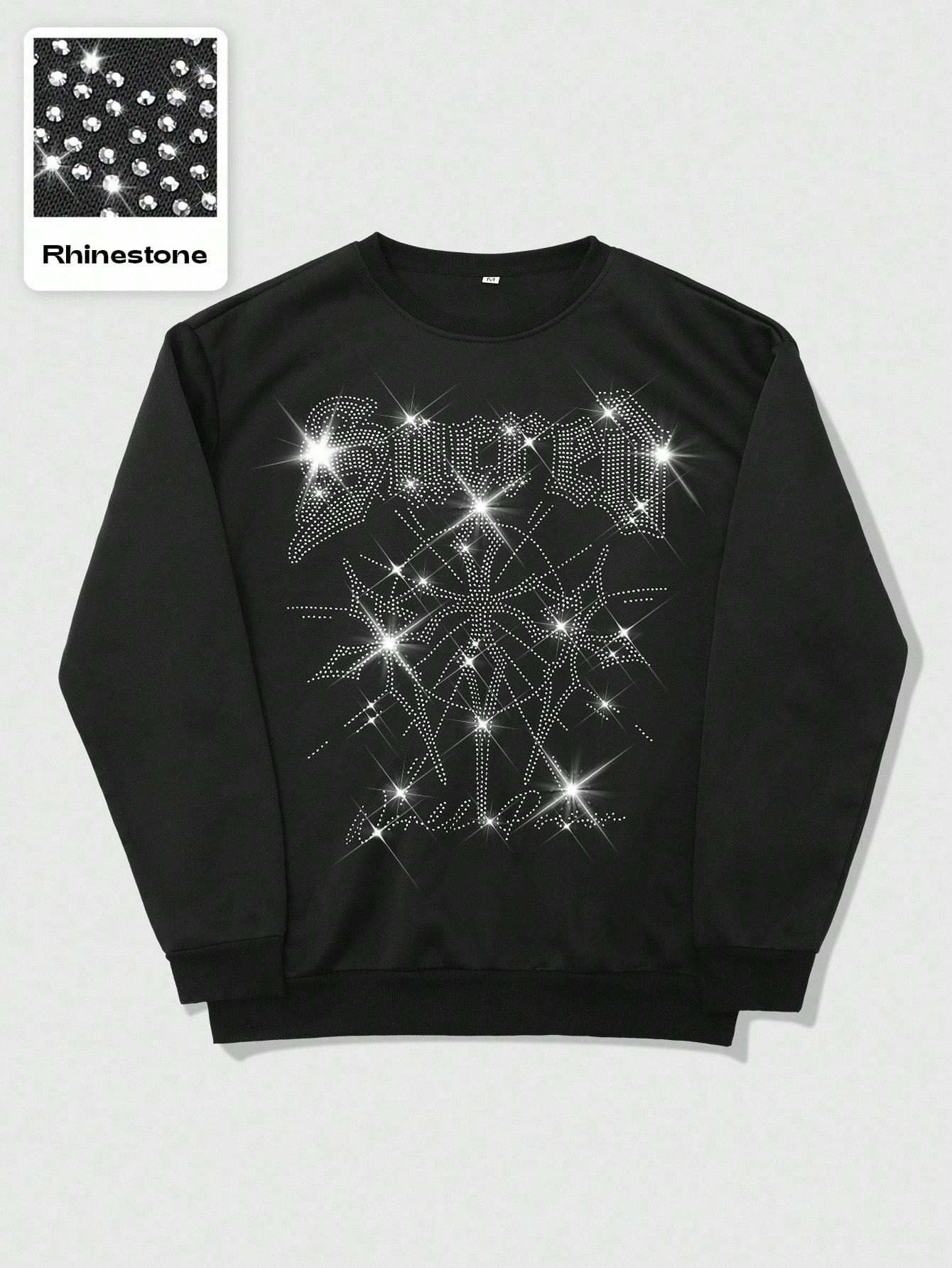 Street Life Herren Schwarzer Rundhals-Sweatshirt mit Strass-Verzierung, Herbst/Winter