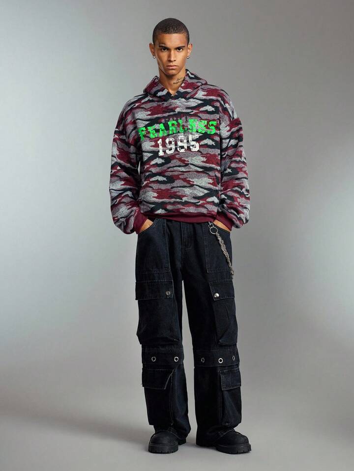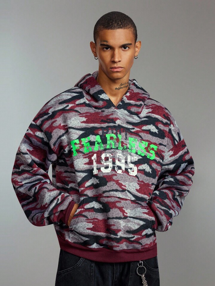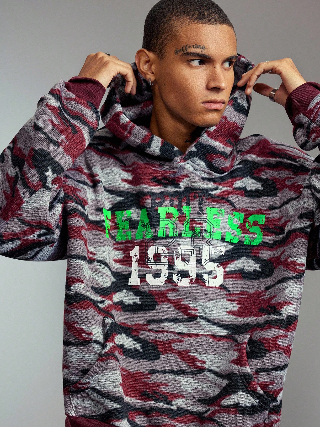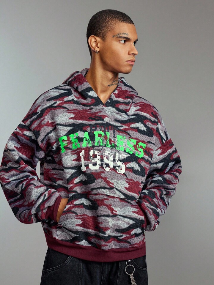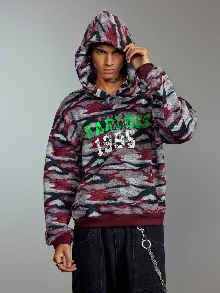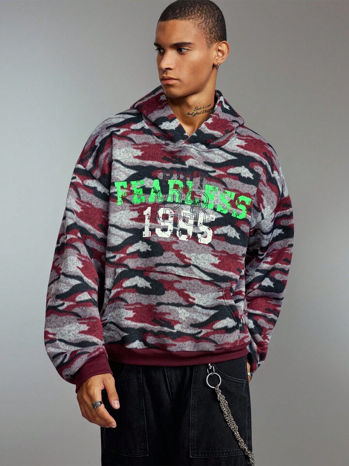 Street Life Herren Camouflage Buchstaben Hoodie, locker geschnittener Stil, Herbst