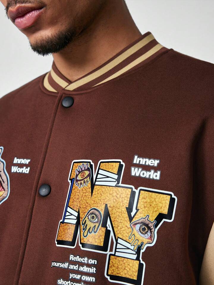 Street Life Herren Lässig Herbst Kontrast Farbe Patchwork Buchstabe Muster Jacke