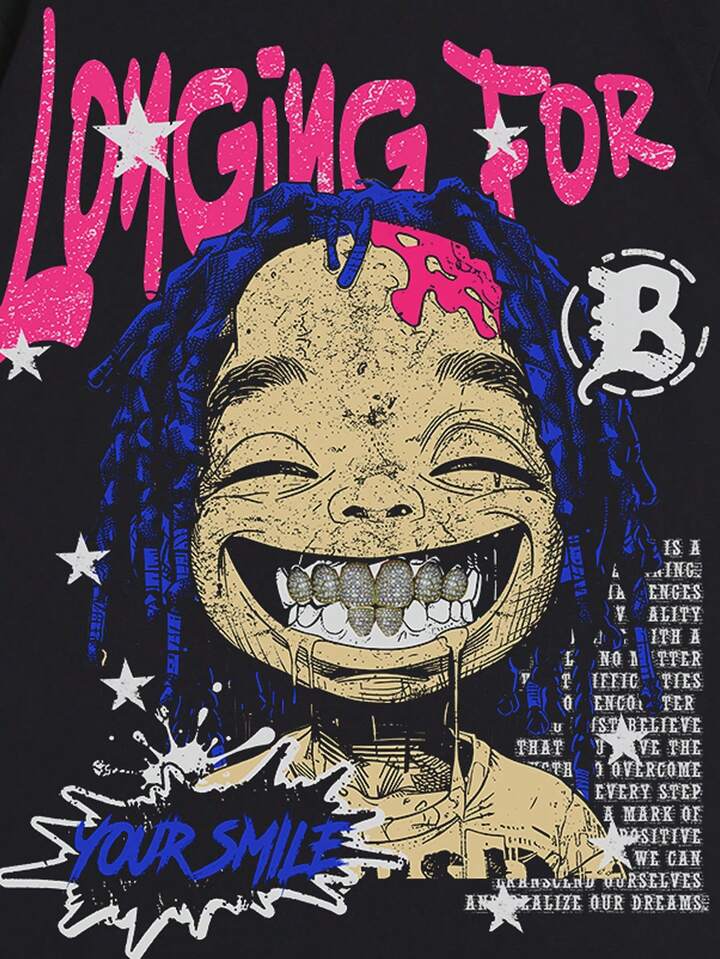 Street Life Herren Lässig T-Shirt mit Cartoon Slogan Aufdruck