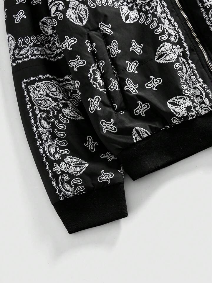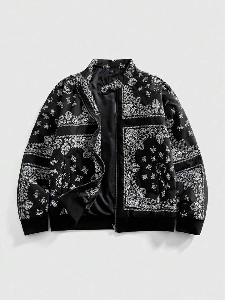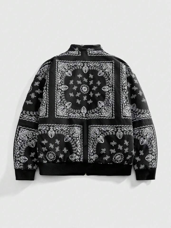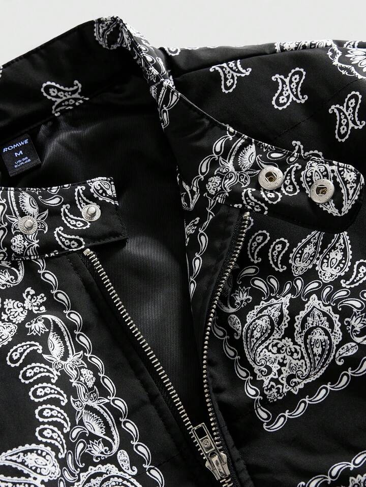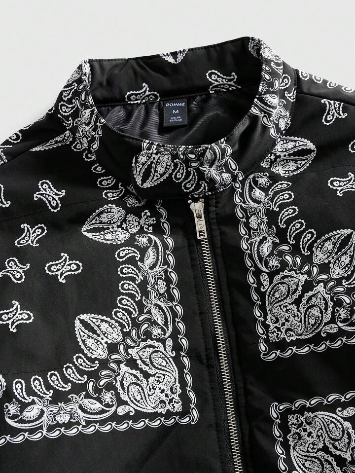 Street Life Herren Lässig Jacke mit Cashew-Muster, Reißverschluss, Winter