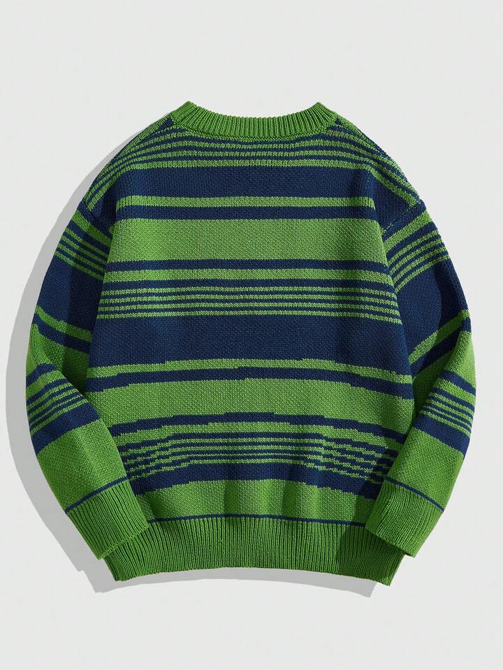 Street Life Herren lässiger zweifarbiger gestreifter Strickpullover mit Jacquard-Muster und Schriftzug, Herbst/Winter