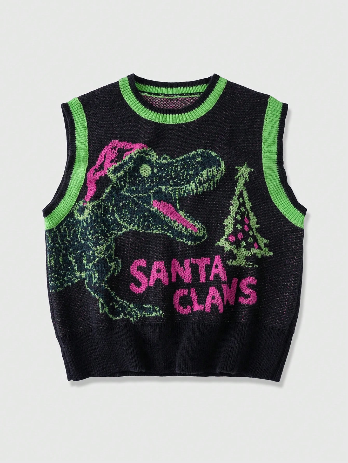 Street Life Herren Lässig Dinosaurier Jacquard Strickweste