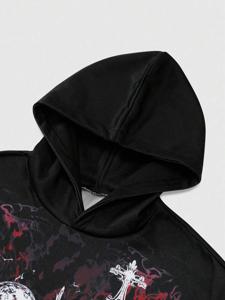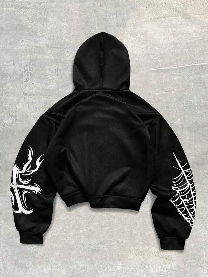Street Life Herren Lässige Mode Amerikanischer Street-Style Halloween Spinnen- & Kreuz-Muster Loose Fit Oversized Hoodie, Frühling/Herbst