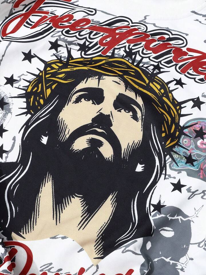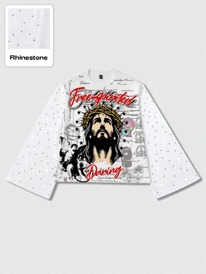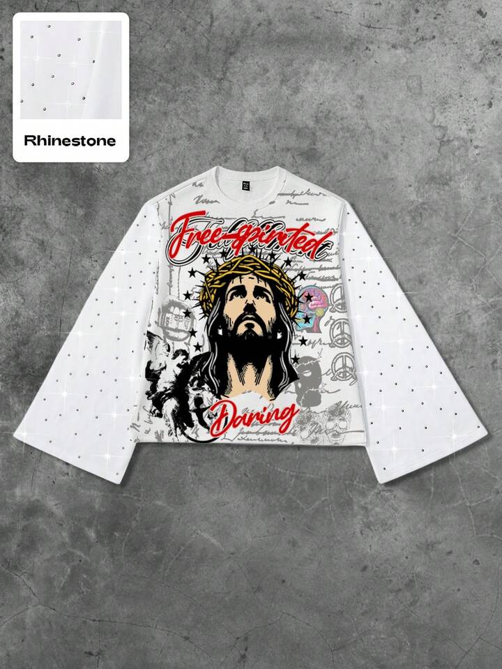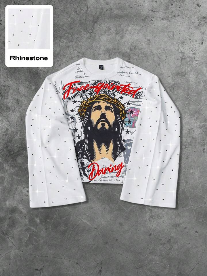 Street Life Herren Lässige Mode Street Jesus Muster Strass Weite Ärmel Pullover Hoodie, Frühling/Herbst
