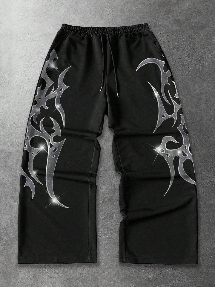 Street Life Herren Lässig Fashion Street Dorn Digital Muster Kordelzug Taille Locker Weites Bein Jogginghose