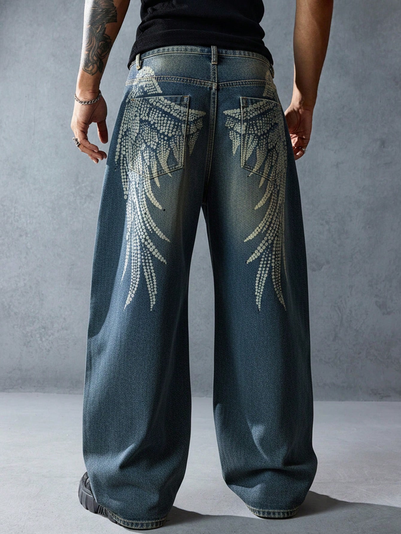 Street Life Herren Lässig Mode Straßen Flügel Muster Weite Schlagjeans