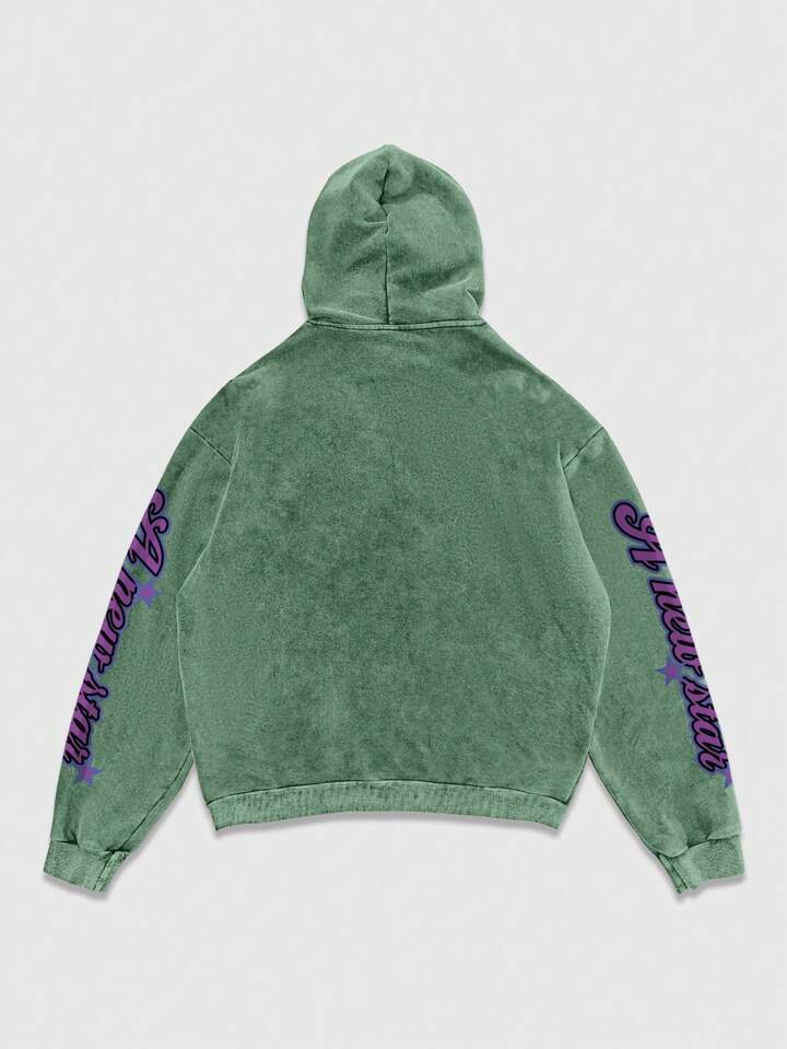Street Life Herren Lässig Graffiti Portrait Muster Washed Hoodie, High Street Style