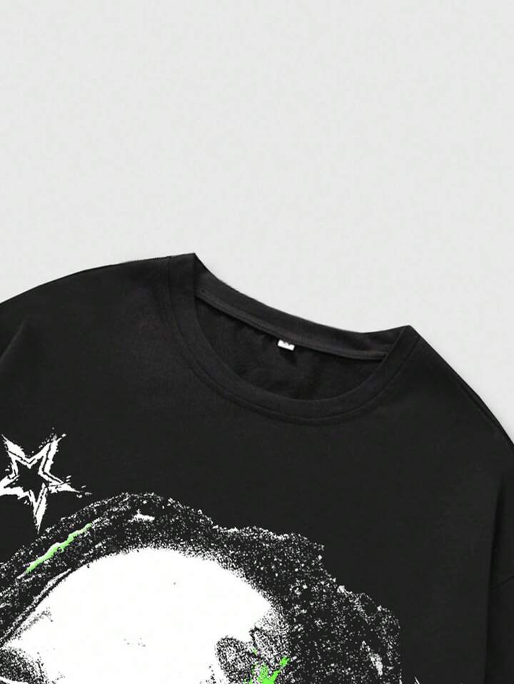 Street Life Herren Lässig Grafik Muster Kurzarm T-Shirt, Sommer, 2000er Jahre Stil