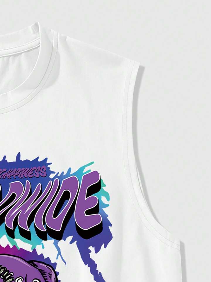 Street Life Herren Lässiges Ärmelloses Tank Top mit Buchstaben- und Cartoon Bär Muster
