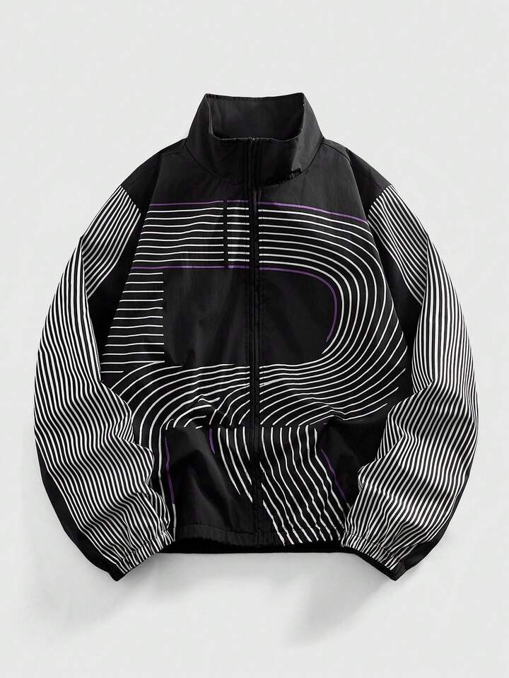 Street Life Herren Lässig Linien Muster Reißverschluss Jacke, Herbst